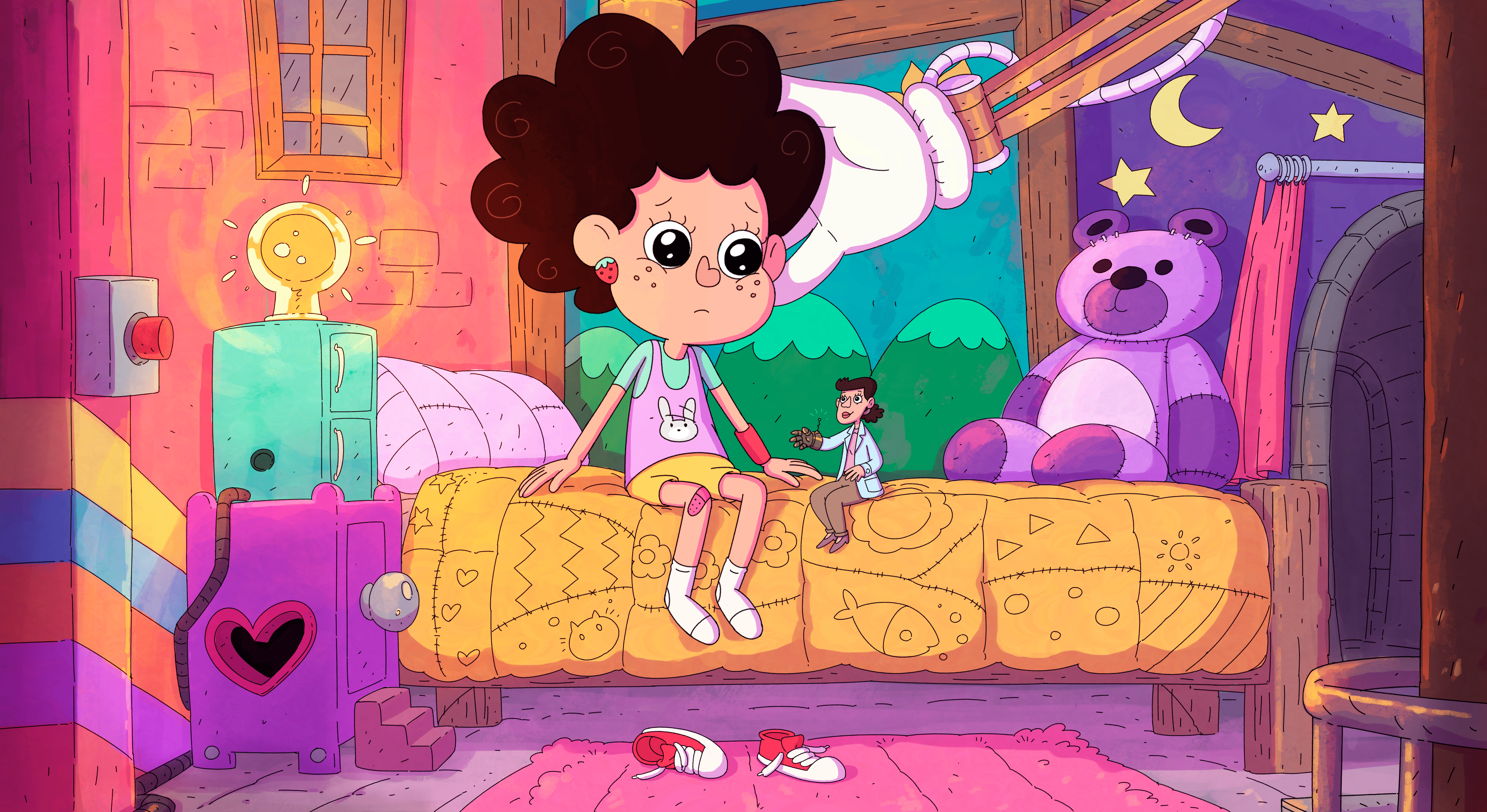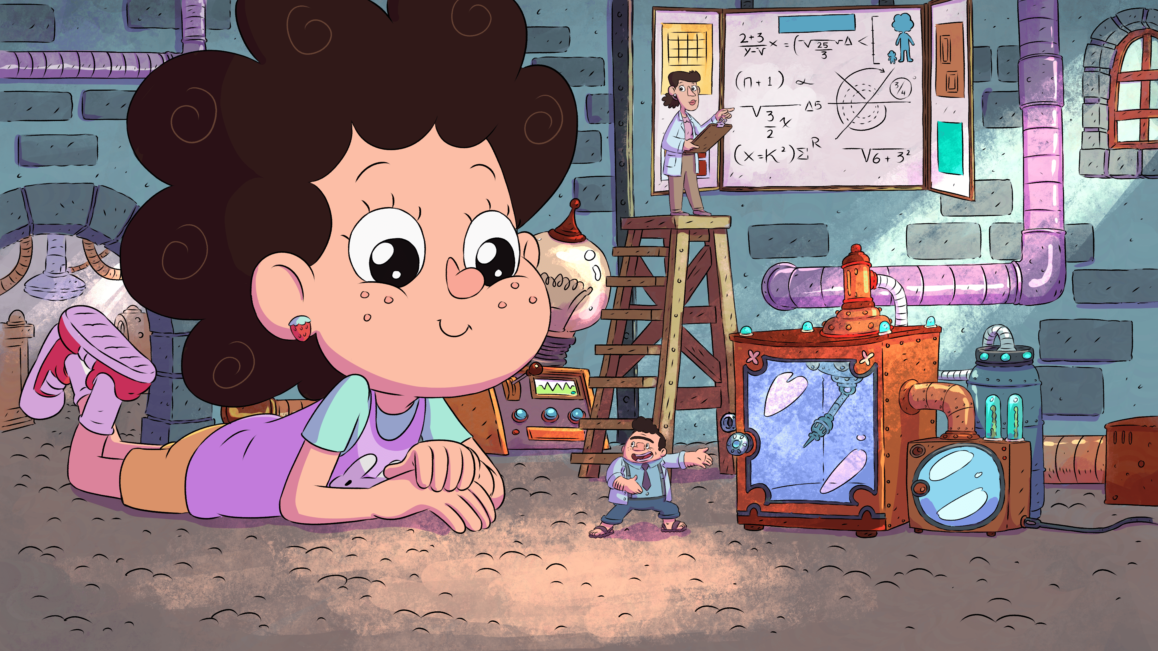 Sol, una niña de 7 años, vive en la ciudad Ciruela con sus padres científicos. Un día, la niña curiosa entra al laboratorio de sus padres y por accidente bebe un experimento que la hace crecer y crecer!! hasta convertirse en una niña gigante!. Sus padres no logran revertir el efecto. Y en búsqueda de un mejor hogar la familia se muda a un castillo abandonado que adaptan con inventos para cubrir las necesidades de la ahora, Niña Gigante. Pero… En este castillo, vivían Los Colita Corta, tres perros callejeros que se auto- destierran a las alcantarillas. No soportan compartir con los molestos humanos. La pandilla de perros formada por Canela Robinson, Palito y Bob, formulan distintos planes, siempre fallidos, llenos de ciencia y humor. Buscando una fórmula para recuperar el castillo, su anhelado hogar.. Mientras tanto, Sol aprende a vivir con su enorme tamaño, a enfrentar desafíos cotidianos y a superar la frustración de vivir en un cuerpo gigante. Su gran estatura se convierte en algunas ocasiones en una ventaja para ayudar a la ciudad en situaciones complicadas. Cada capítulo autoconclusivo presenta una nueva aventura de la Niña Gigante junto a sus padres y amigos. Y un nuevo intento de Los Colita Corta, por desatar el caos para lograr su objetivo. Esta serie combina comedia, ingenio y el valor de aceptar las diferencias.